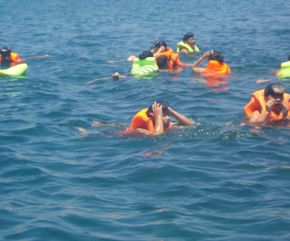 - Với mặt nạ, ống thở bãi san hô chỉ nằm cạch mặt nước từ 2m nước, du khách sẽ có những giây phút thật sự thư giãn với những rạng san hô màu sắc sinh vật biển phong phú với những con Sao biển xanh, đỏ, các loại cá màu xanh và những rạng san hô đa loại nhiều sắc màu rực rỡ.